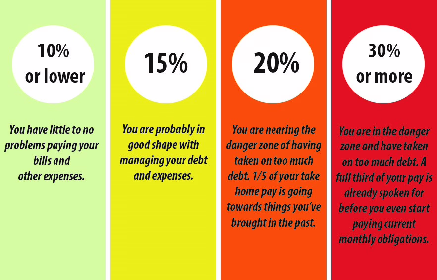 Lenders typically prefer a lower DTI as it shows you’re not stretched too thin. Here’s a quick visual guide to where your DTI might land: